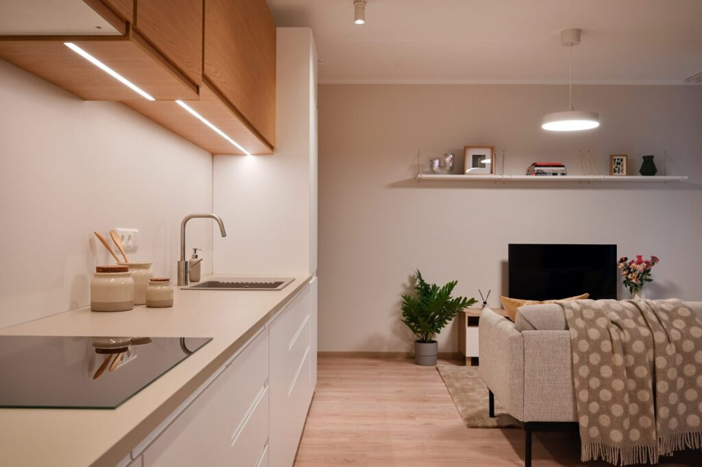 • Katrā istabā rozetes un slēdži, izbūvēti izvadi gaismas ķermeņiem katrā istabā.
