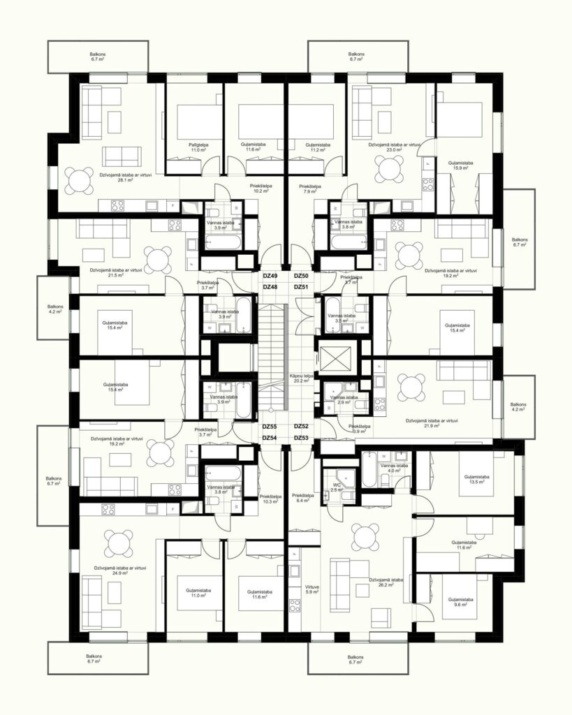 71 jauns dzīvoklis ar 1, 2, 3 un 4 istabām