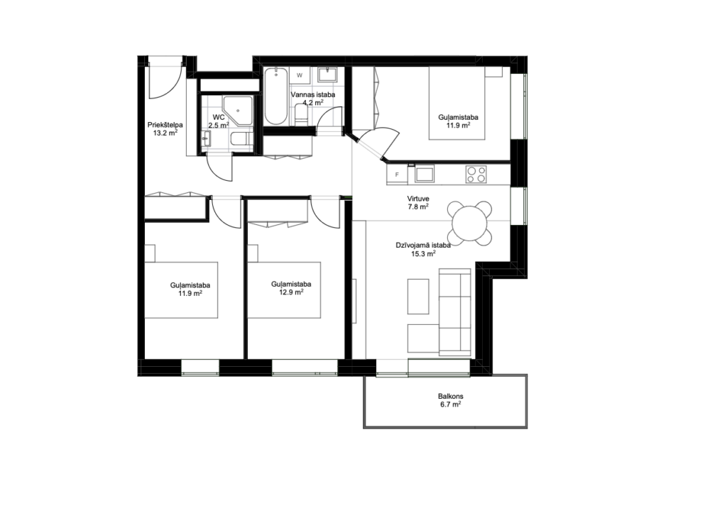 • Apartment entrance doors – fire-resistant EI30, equipped with a peephole and lock;